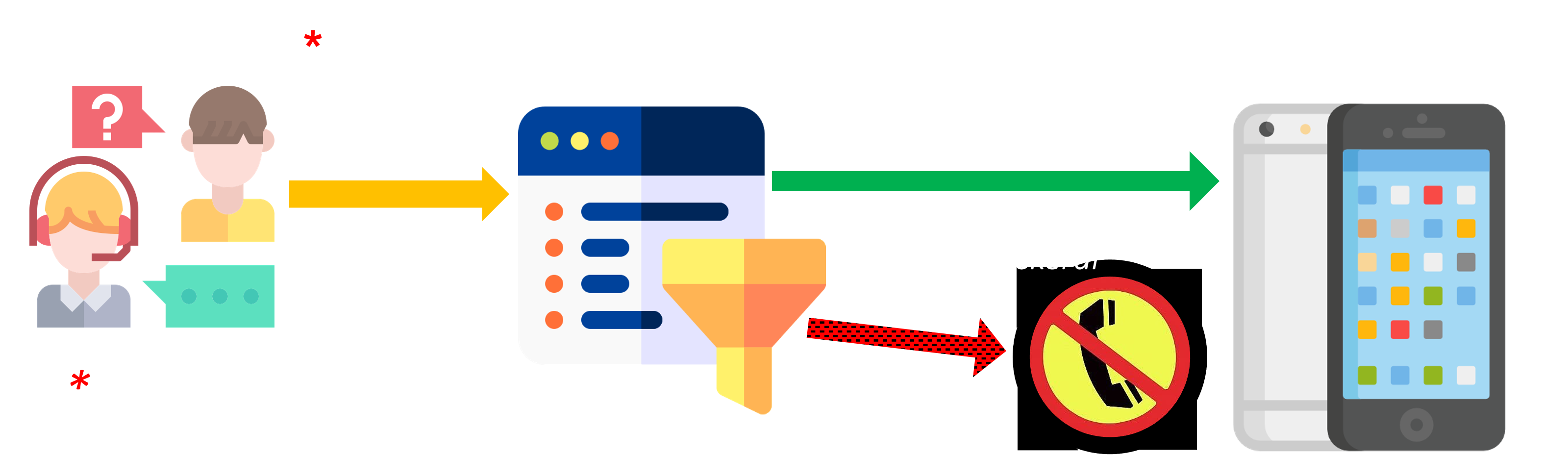 Tjänsten CallFilter fungerar på så vis att du vidarekopplar din telefon till ett vanligt telefonnummer (0701302019) och alla samtal som ringer till dig styrs därmed till CallFilter som blockerar samtal som inte finns med i samtal som normalt ringer dig (din vänlista).